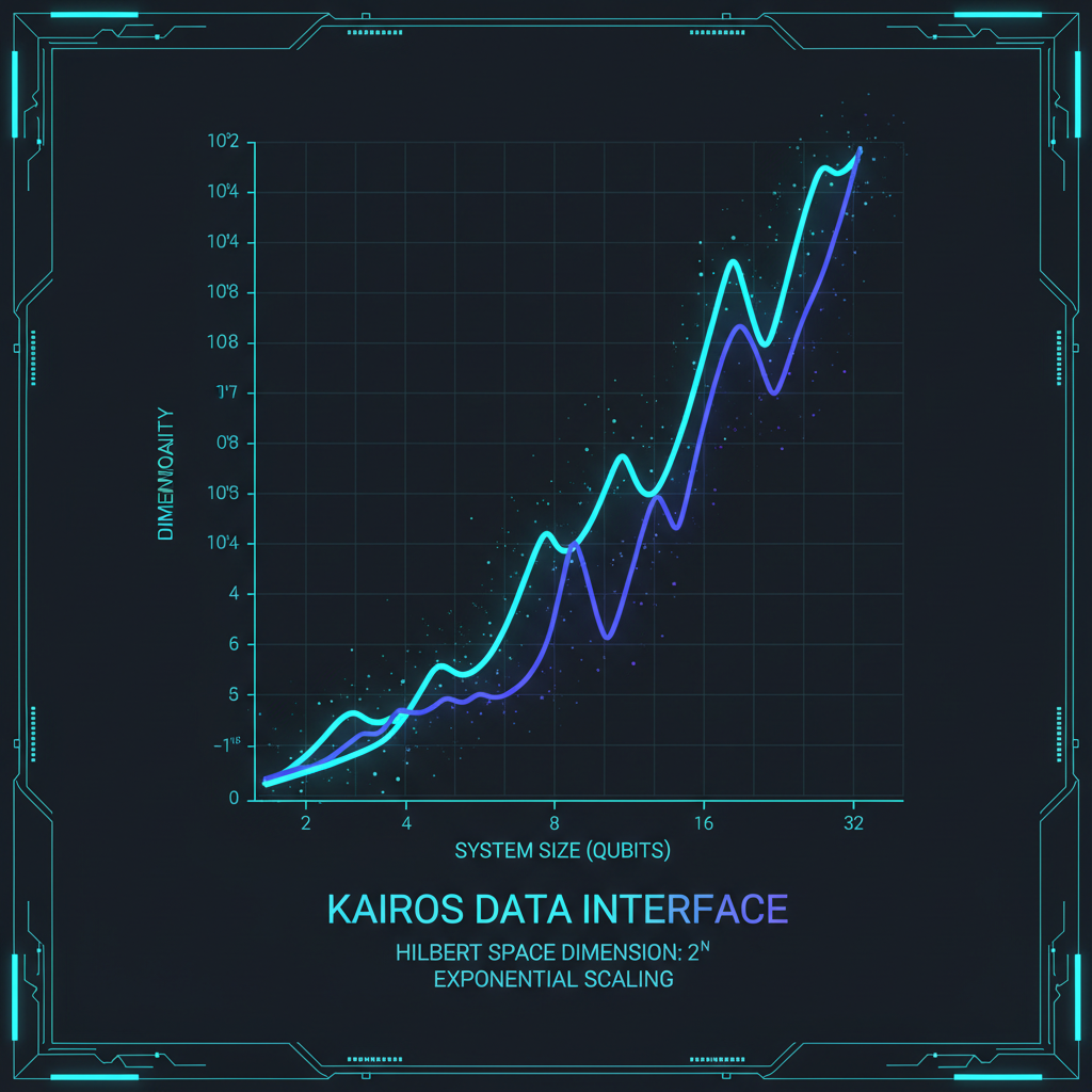 Exponential scaling of Hilbert space dimensionality.